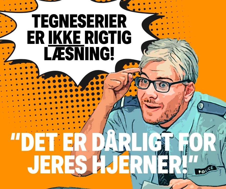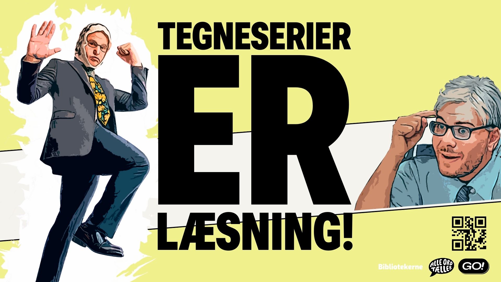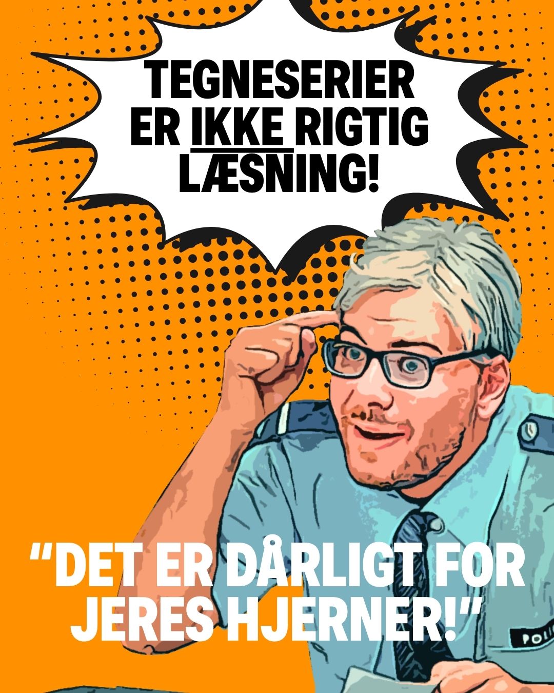 Her på siden finder du eksempler på og link til forskellige grafikker til print og digitalt brug i forbindelse med kampagnen "Tegneserier ER læsning!". Kampagnen kører fra uge 35 og må sættes op frem til d. 1. december 2025.